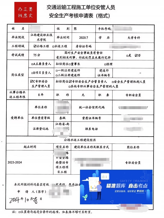 崗位名稱:主要負責人或者項目負責人或者專職安全員