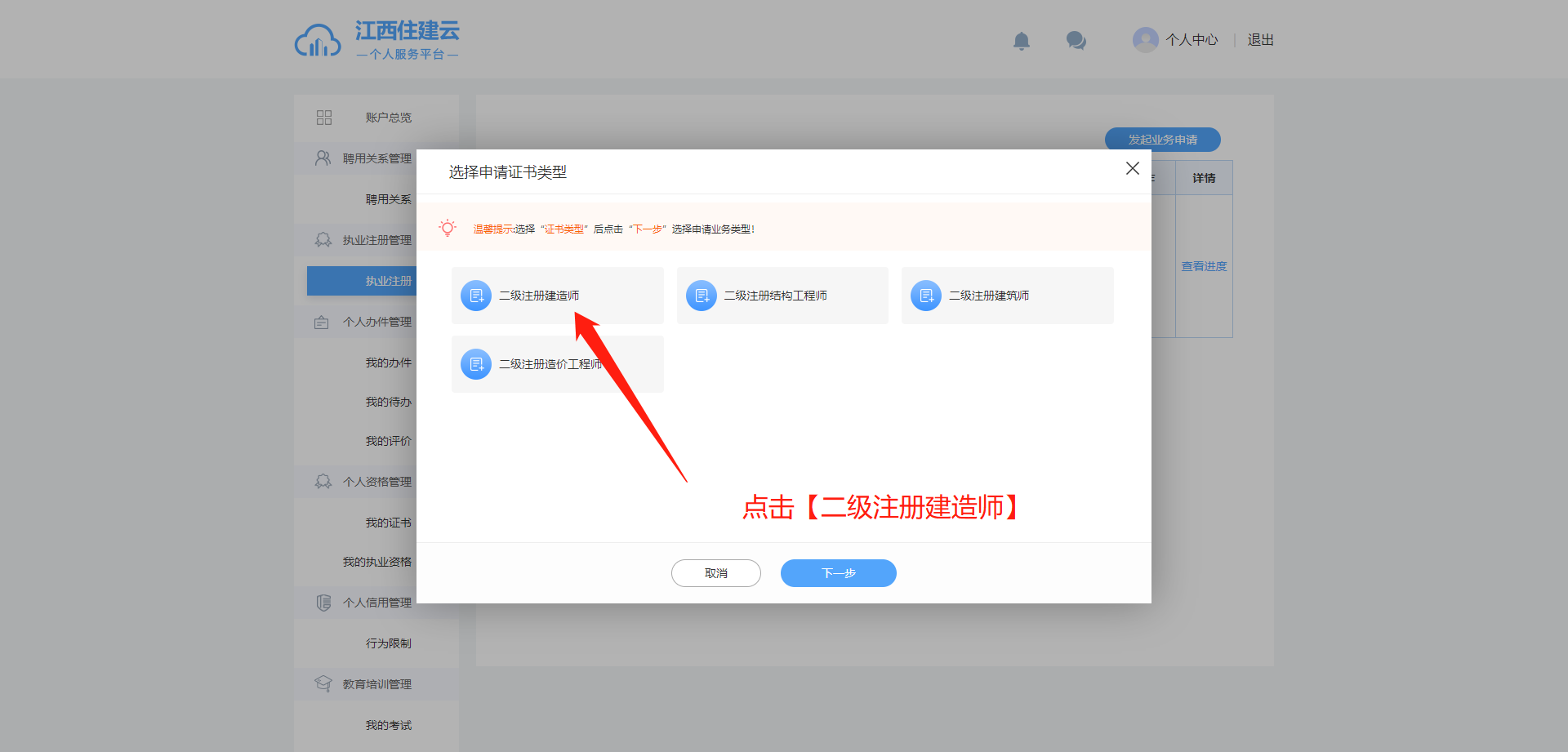 以下操作屬于建造師注冊流程,僅適用于已有住建云聘用單位的人員。若你尚未有聘用單位,則無需關注 本操作流程。